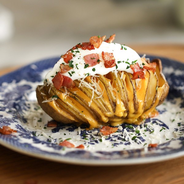 오븐에서 15~20분 정도 치즈가 녹을 때까지 구워주세요.6.구운감자에 플레인요거트를 올리고, 베이컨칩과 파슬리가루를 뿌려주세요.